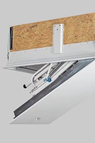 Popisek výrobku Protipožární Kovové skládací půdní schody s vysokým kovovým obložením stropu a 32 cm kvalitním dřevěným obložení stropu