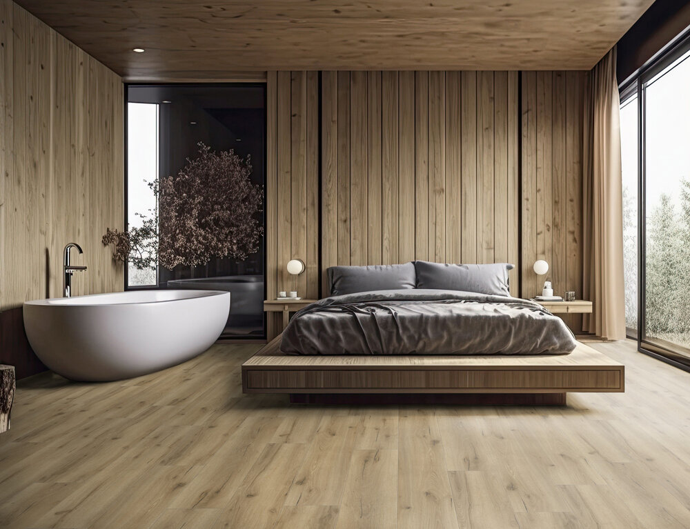 Vinylové podlahy TILO Rigid v sobě spojují elegantní vzhled přírodních materiálů s odolností moderní technologie. Jsou voděodolné, rozměrově stabilní a díky rigidnímu jádru zvládají i větší zátěž. Integrovaná kročejová izolace zajišťuje tichý a pohodlný došlap, čtyřstranná V-spára a kvalitní povrchová úprava přidávají na estetice i praktičnosti. Ideální volba do každé místnosti včetně koupelny a kuchyně.