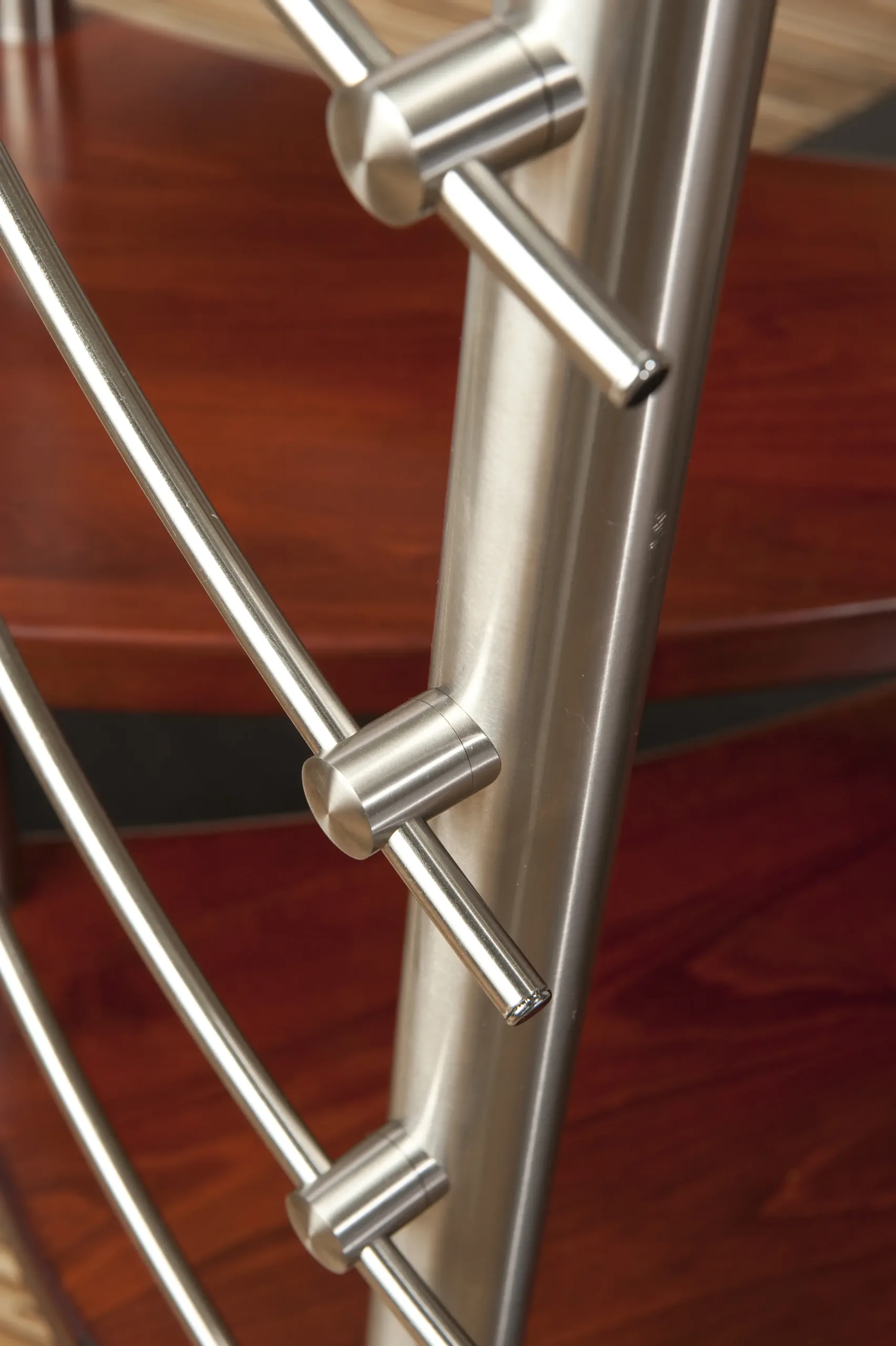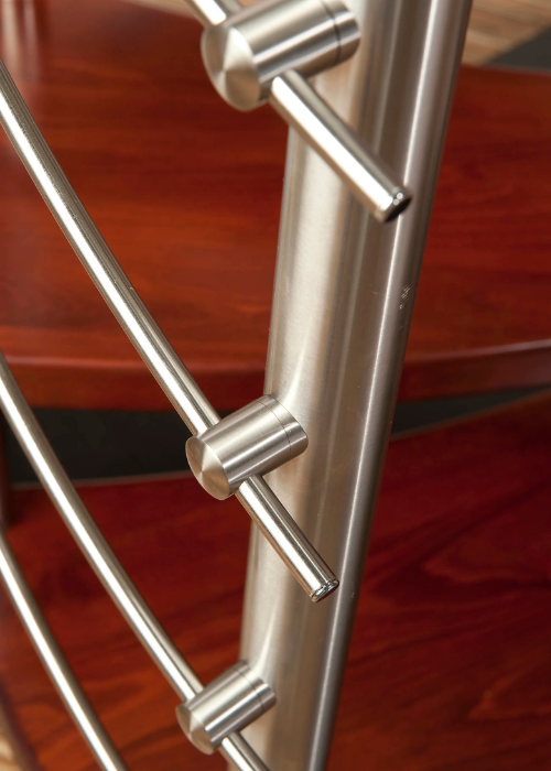 Nerezové zábradlí k točitému schodišti v exteriéru