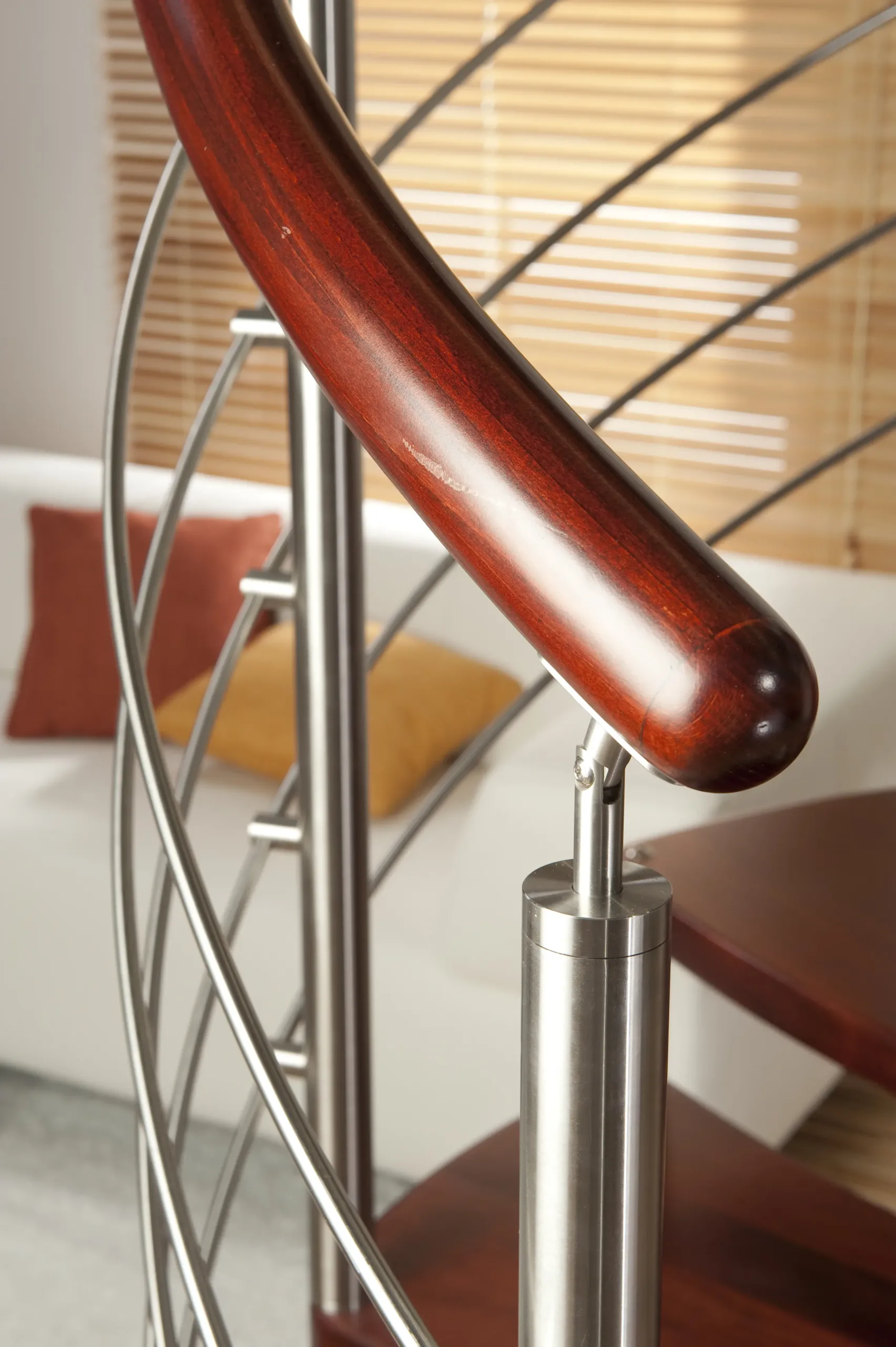Prutové zábradlí přes dvě podlaží vytváří vzdušný a otevřený prostor. Je ideální pro moderní interiéry, kde chcete zachovat světlo a prostornost, aniž byste obětovali bezpečnost.