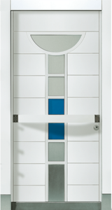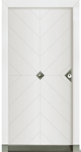 Povrchy dostupné v barvě RAL/NCS nebo bílé, případně dřevo s ochranným lakem. Lišty v barvě RAL/NCS. Elegantní nerezové kování podtrhuje eleganci dveří, zatímco vnitřní strana je individuálně přizpůsobena obytnému prostoru, aby vytvořila harmonický celkový dojem. Na přání jsou dveře k dispozici také se skleněnou výplní, která vnáší do domu další světlo.