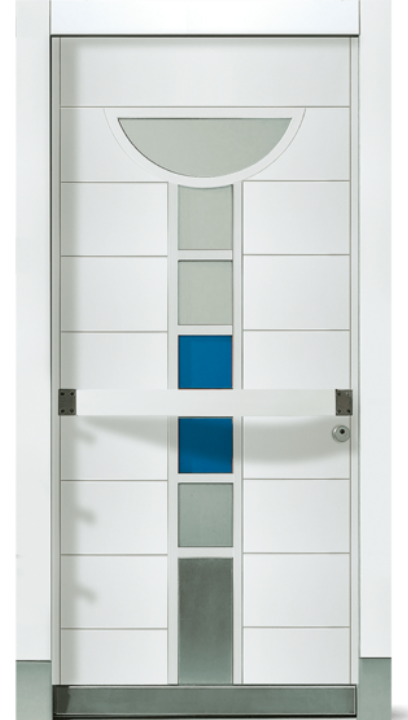 Vnější strana s drážkovaným frézováním v rybí kosti. RAL/NCS bílá nebo jiná barva, také v provedení s ochranným lakem na dřevo, přerušovaná skleněným výplní se dvěma dřevěnými příčkami nahoře a hladkou výplní dole. Vnitřní strana hladká, optimálně přizpůsobitelná interiéru.