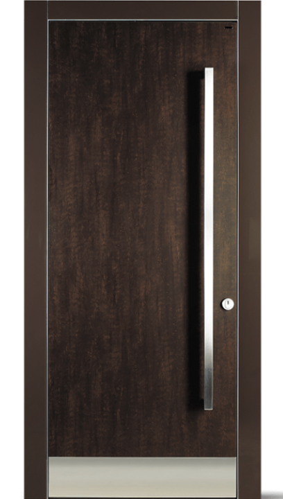 Většinou bezdeformační vstupní dveře, mnohovrstvá lepená dřevěná konstrukce s hliníkovou vrstvou, izolovaným jádrem a tepelně odděleným prahovým a dvojitým těsnicím systémem s trojitým falcem pro vynikající tepelné a akustické izolační vlastnosti.