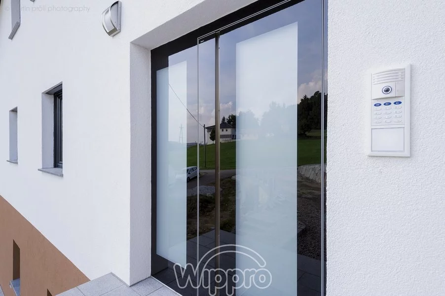 Vchodové dveře Danburit Circle (s obloukovým profilem) mají jednoduchý design. Díky tomu vyniknou povrchy Wippro obzvláště dobře.