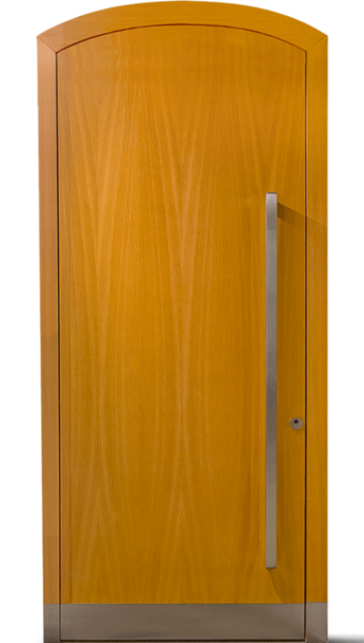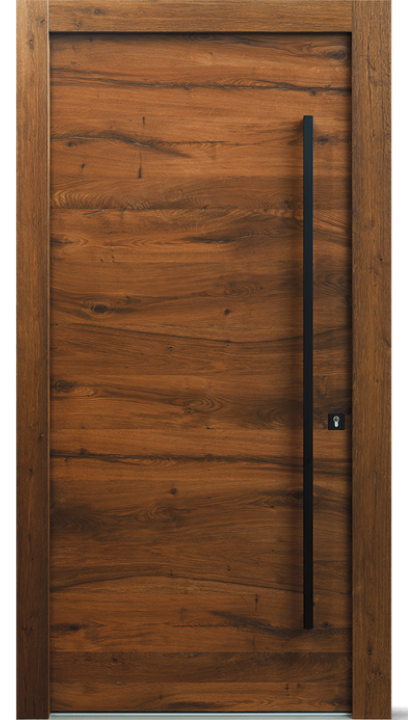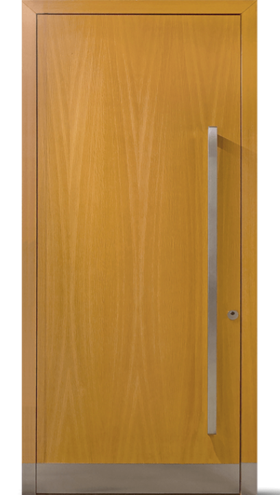 Standardní verze je bez skleněných výplní. Vícevrstvá lepená dřevěná konstrukce, izolované jádro, tepelně oddělený práh a kvalitní systém dvojitého těsnění s trojitým falcem zajišťují výborné tepelné a akustické izolační vlastnosti. Dveře jsou vybaveny vysoce kvalitní technikou, kterou lze individuálně přizpůsobit.