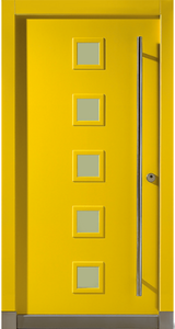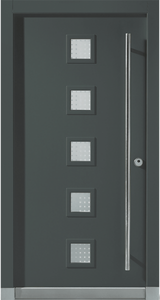 Vchodové dveře Wippro Delta nabízejí možnost individuálního řešení prosklení. Hladká vnější i vnitřní plocha dveří doplněná o pět čtvercových skleněných výplní (počet lze přizpůsobit dle výšky dveří) propouští přirozené světlo do interiéru. Dveřní křídlo v lakovaném provedení RAL/NCS lze snadno sladit s architekturou domu.