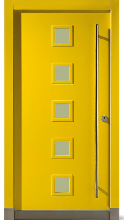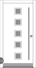 Vchodové dveře Wippro Delta nabízejí možnost individuálního řešení prosklení. Hladká vnější i vnitřní plocha dveří doplněná o pět čtvercových skleněných výplní (počet lze přizpůsobit dle výšky dveří) propouští přirozené světlo do interiéru. Dveřní křídlo v lakovaném provedení RAL/NCS lze snadno sladit s architekturou domu.