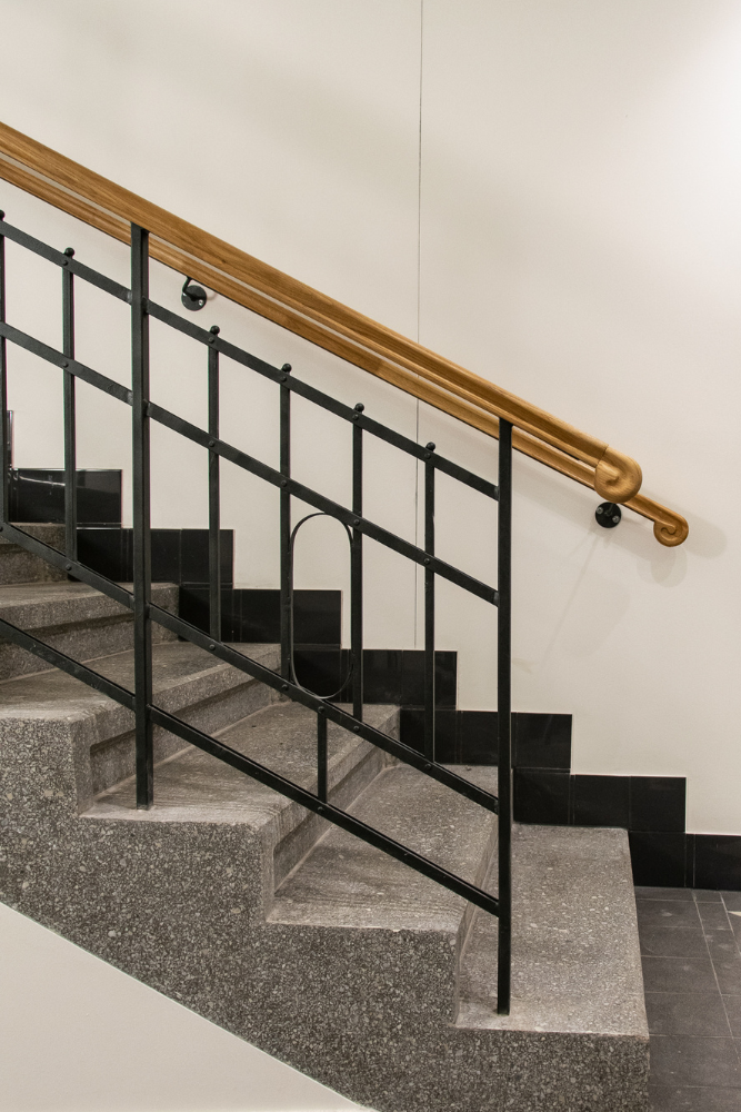Realizace prvorepublikového zábradlí s dubovým madlem a ocelovou výplní. Zábradlí vychází z dobových vzorů první republiky a bylo vyrobeno na míru ke schodišti z masivního dubu.