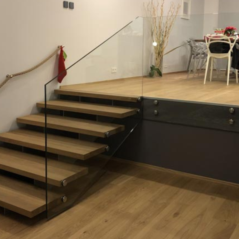 Celoskleněné zábradlí kotvené do stupňů