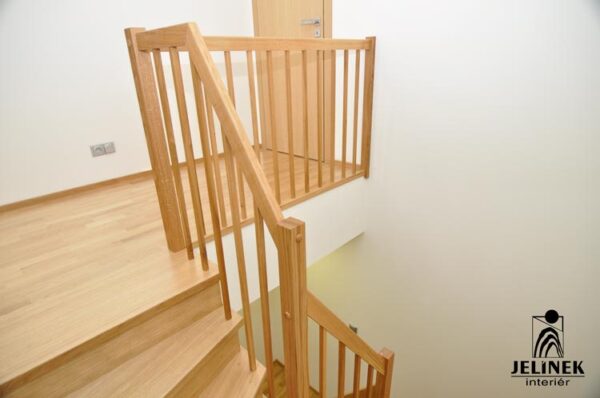 Dubové zábradlí ladící s dubovým schodištěm vytváří harmonický a teplý vzhled. Přírodní dřevo dodá interiéru příjemnou atmosféru a hodí se do klasických i moderních prostor.