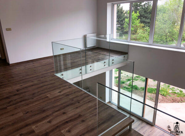 Celoskleněné zábradlí na galerii