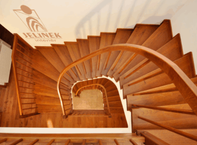 Zákazník měl požadavek na oblé provedení z důvodu umístění schodiště do prostoru, a proto jsme navrhli toto ohebníkové schodiště.