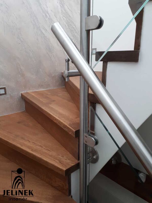 Samonosné zadlabané schodiště se svislou nerezovou výplní
