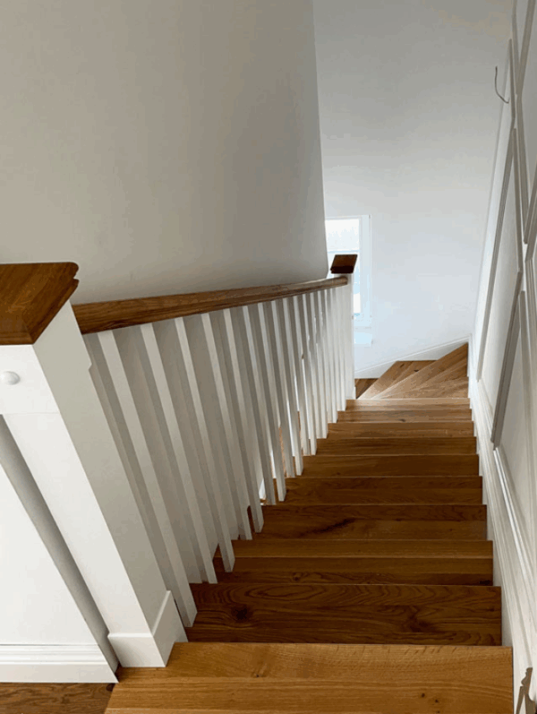 Obklad schodů masivním dubem je ideální pro rodinné domy nebo byty, kde chcete vytvořit teplou a příjemnou atmosféru. Dubové dřevo je odolné a hodí se do prostor s vyšší zátěží, jako jsou chodby nebo obývací pokoje.