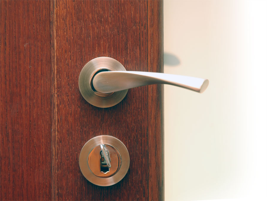 Eleganci dveří doplňuje klika z nerezové oceli a panty s povrchovou úpravou satén – nikl. Dále byl také kladen důraz na propustnost světla, ale nikoliv na průhlednost.