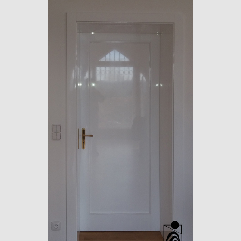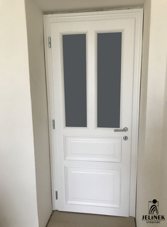 Neobvyklé provedení interiérových dveří s průchozím otvorem v plné světlé výšce místnosti. Takovéto dveře v interiéru navozují vyšší míru luxusu a krásně propojují jednotlivé místnosti.
