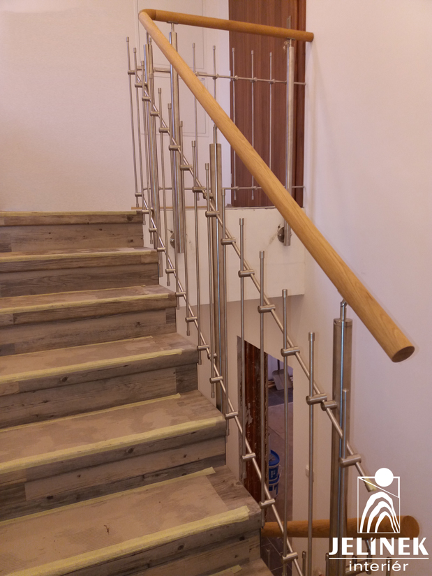 Nerezové zábradlí, madlo dub rustik