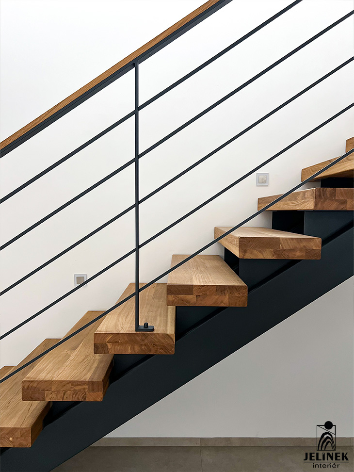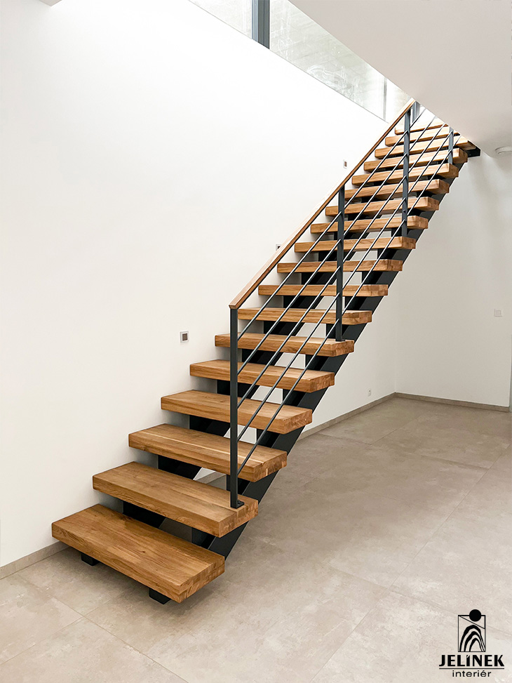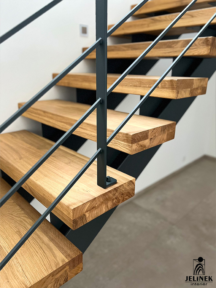 Ocelové schodiště s dubovými stupni