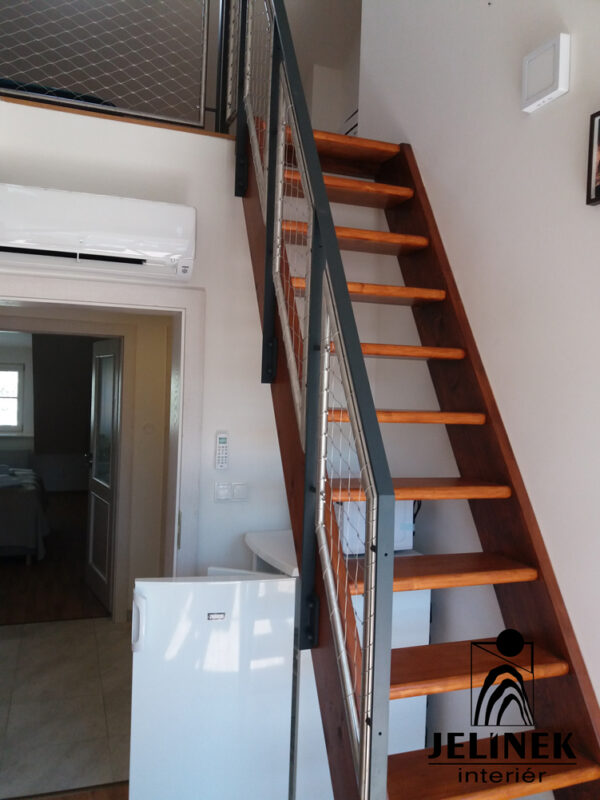 Nosníkové schodiště a zábradlí se síťovinovou výplní