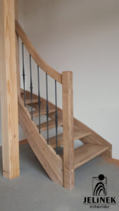 Zákazník měl požadavek na oblé provedení z důvodu umístění schodiště do prostoru, a proto jsme navrhli toto ohebníkové schodiště.