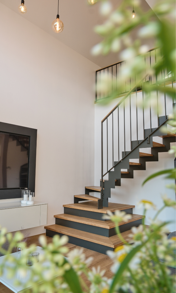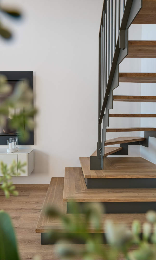 Zadlabané stupně dodávají schodišti lehkost a moderní vzhled, aniž by obětovaly stabilitu.