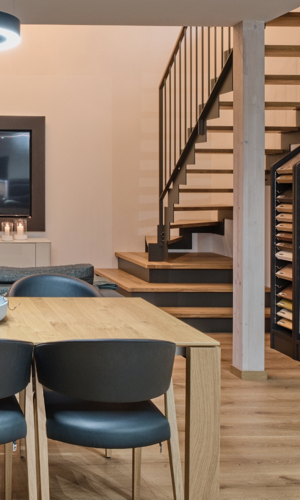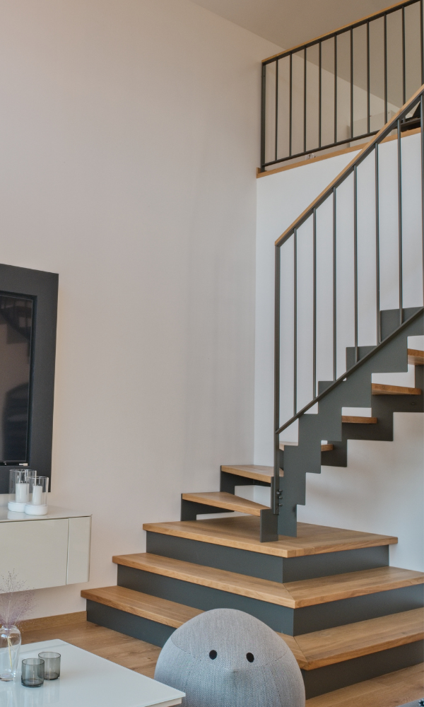 Tento projekt byl technickou výzvou, avšak výsledek stál za to. Díky kombinaci masivního dřeva a ocelových prvků vzniklo schodiště, které propojuje jednotlivé úrovně prostoru a zároveň vytváří silný vizuální dojem.