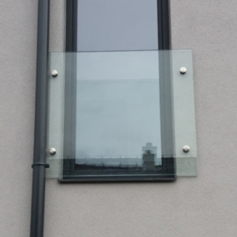Na přání zákazníka jsme realizovali skleněné venkovní zábradlí k francouzským oknům do fasády rodinného domu.