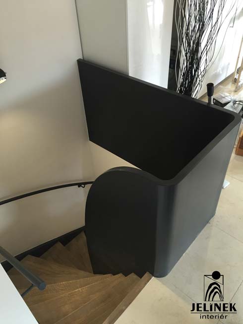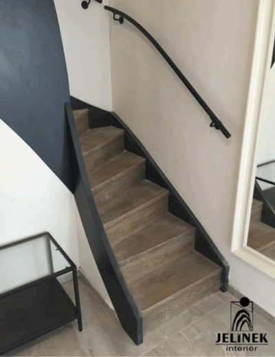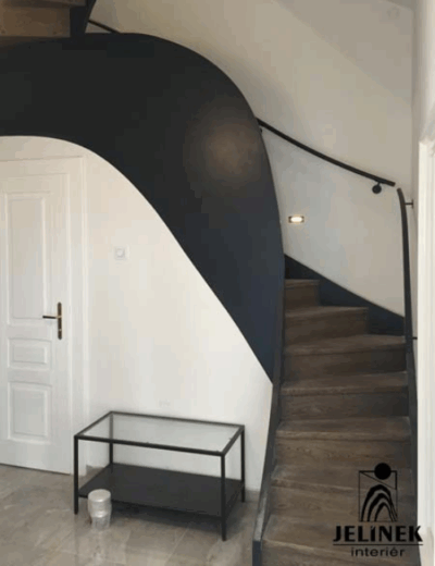 Zákazník měl požadavek na oblé provedení z důvodu umístění schodiště do prostoru, a proto jsme navrhli toto ohebníkové schodiště.
