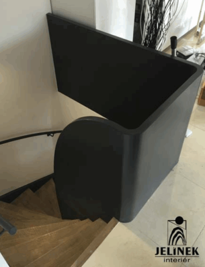 Námi vyrobené a namontované prostorově úsporné točité schody do patra.