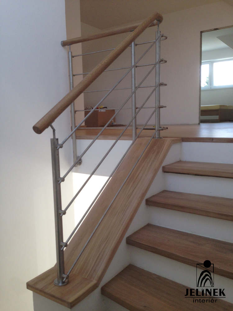 Nerezové zábradlí, madlo dub rustik