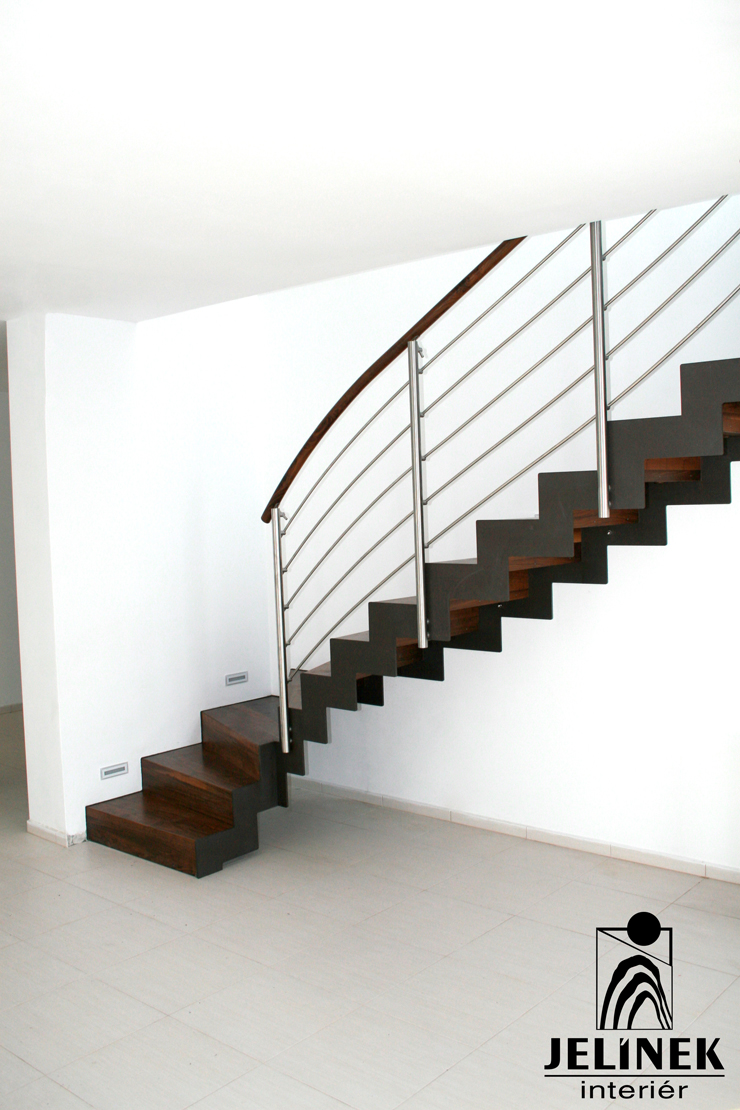 Zákazník měl požadavek na oblé provedení z důvodu umístění schodiště do prostoru, a proto jsme navrhli toto ohebníkové schodiště.
