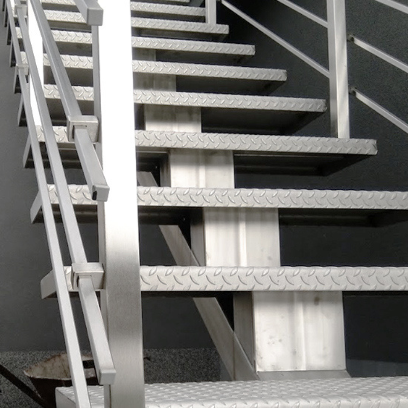 Ocelové točité schody se stupni ze slzové oceli jsou stylové a praktické. Slzová ocel zajišťuje odolnost proti opotřebení a dodává schodům výrazný vzhled. Vhodné také do exteriérů.