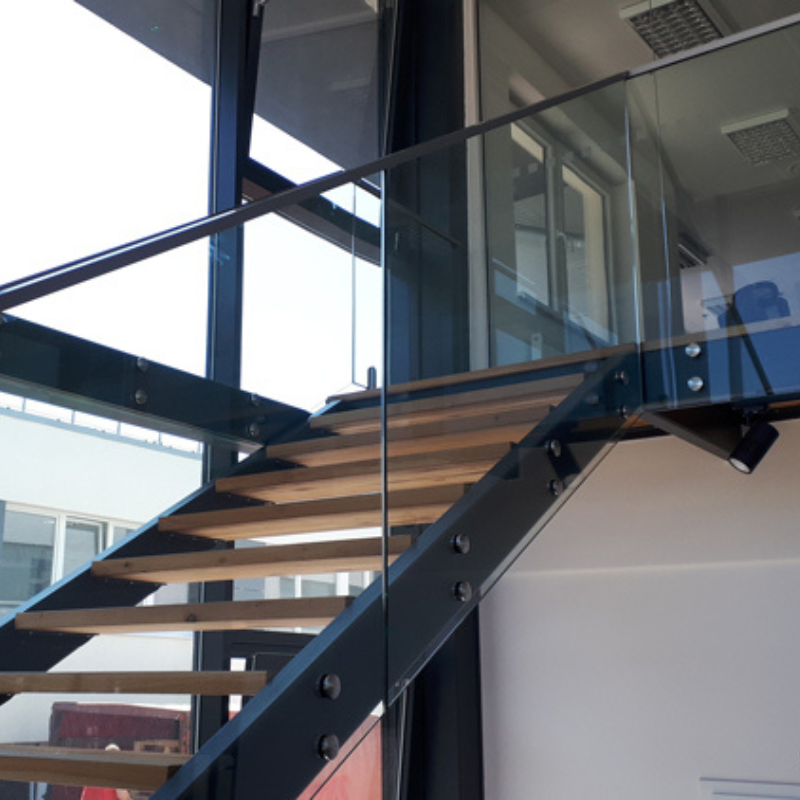 Zábradlí s celoskleněnou výplní je vhodné pro komerční prostory, jako jsou kanceláře, obchody nebo hotely. Sklo propouští světlo a zachovává otevřený prostor, aniž by obětovalo bezpečnost.