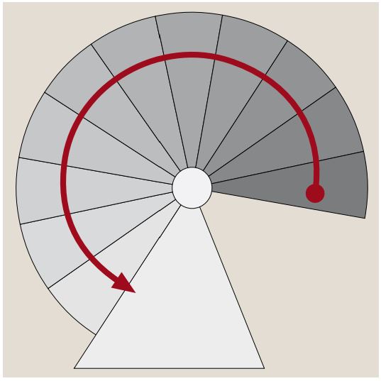Vřetenové schodiště Gardenspin je dáno úhlem zatočení schodů. Úhel otočení pro Gardenspin je nastavitelný v rozmezí od 23,5° do 26,5°, viz. nákres (v případě 12 schodů). Při uvažování nad podobnou realizací doporučujeme zohlednit prostorovou situaci v místě montáže, ale také např. okna a vchodové dveře.