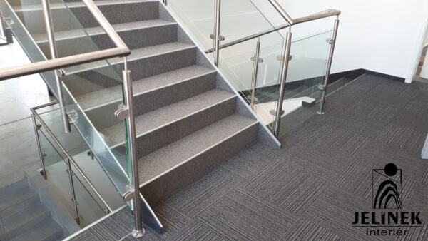 Celoskleněné zábradlí kotvené do stupňů
