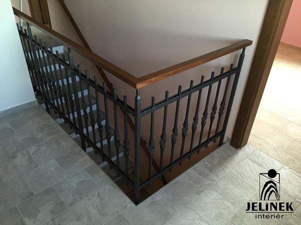 Realizace prvorepublikového zábradlí s dubovým madlem a ocelovou výplní. Zábradlí vychází z dobových vzorů první republiky a bylo vyrobeno na míru ke schodišti z masivního dubu.