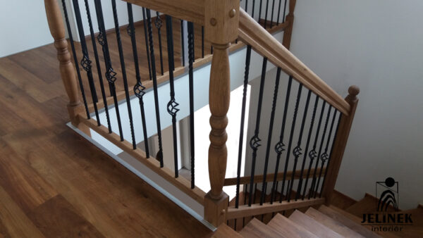 Realizace prvorepublikového zábradlí s dubovým madlem a ocelovou výplní. Zábradlí vychází z dobových vzorů první republiky a bylo vyrobeno na míru ke schodišti z masivního dubu.