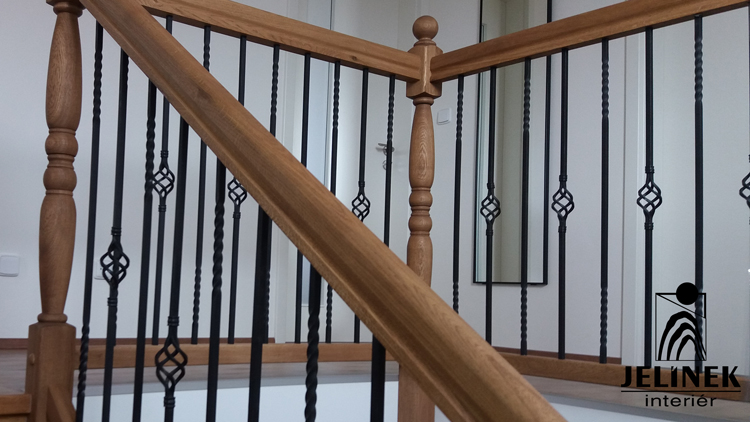 Klíčovým prvkem této realizace je spojení masivních stupňů a zábradlí s kulatými příčkami, které interiéru dodávají vzdušnost a moderní vzhled.