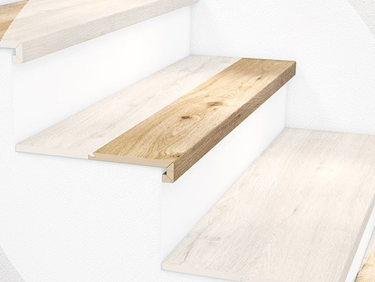Výrobce TILO myslí na celistvost interiéru. Proto lze dodat speciální podlahové lamely (profily) pro obložení schodišťového monolitu pro dosažení jednotného designu podlahy po celém prostoru domu. Můžete tedy podlahu ve spodním prostoru plynule navázat na horní prostor, díky těmto speciálním profilům pro obklad schodů. Lze vybrat ze dvou designových provedení profilu.
