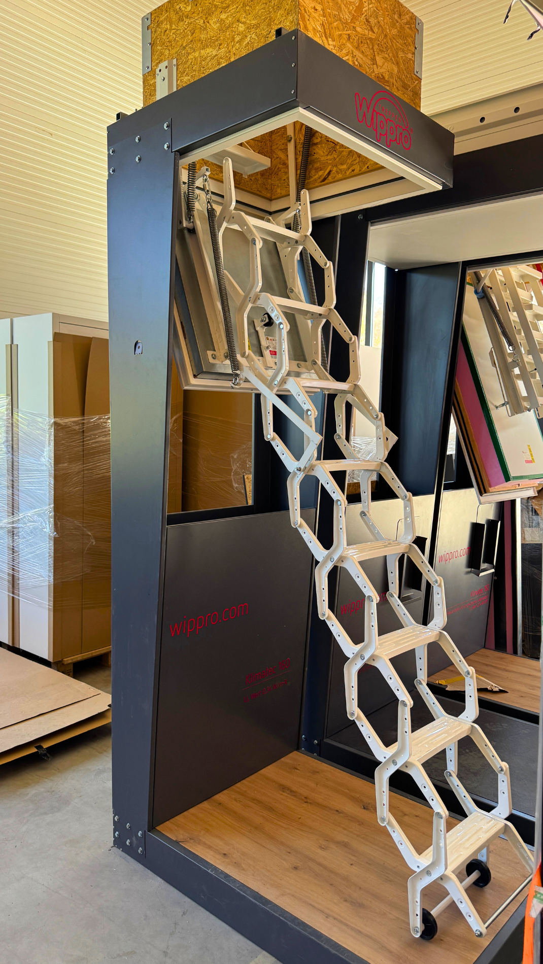 Showroom společnosti Wippro ve Vorderweißenbachu, známý jako „dveřní zážitkové centrum“, nabízí na ploše téměř 1000 m² širokou škálu produktů včetně interiérových a vchodových dveří, půdních schodů a dalších výrobků Wippro.