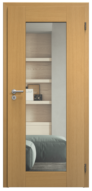 Bezfalcová zárubeň – dveře jsou na hraně hladké (bez polodrážky) a dosednou celé do zárubně.